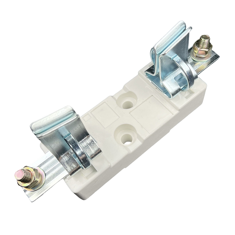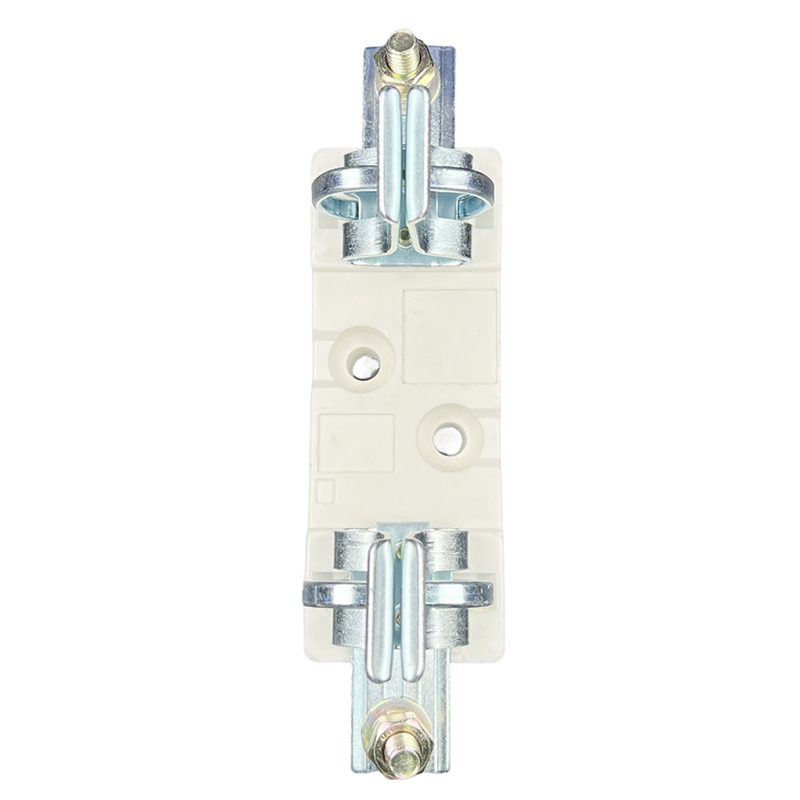 The base is a fixed part of the fuse, which supports the electrical connection between the fuse and the access circuit. It is composed of an insulating base plate, a wedge-shaped static contact, a retaining spring, etc., and is an open structure. The front terminal is connected to the external wire by bolts. Two mounting holes are reserved on the bottom plate for fixing. The whole base has the advantages of good heat dissipation, high tensile strength, reliable contact and convenient operation.